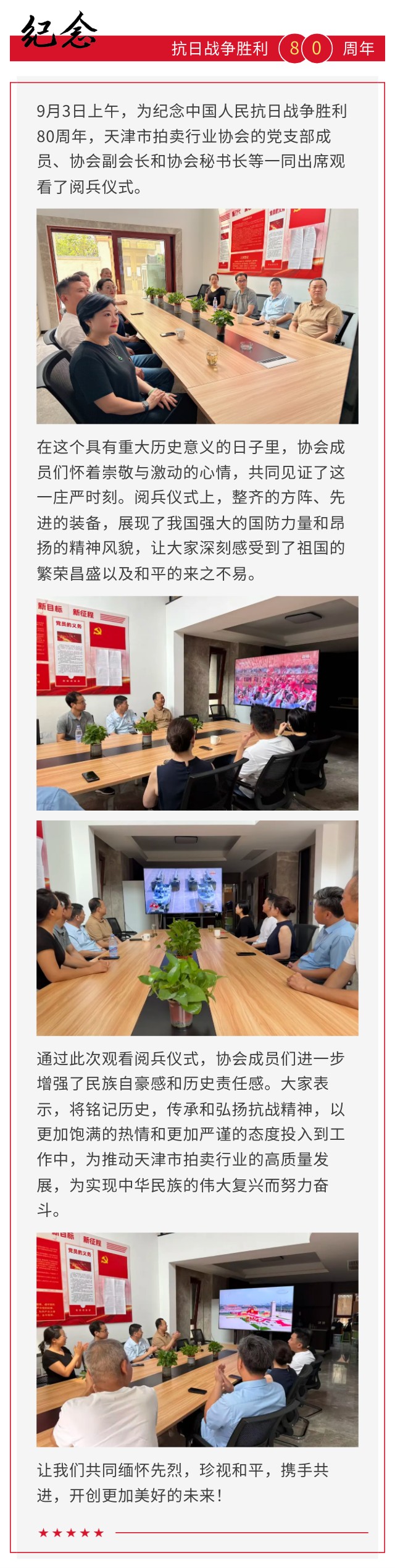 【市拍协】铭记历史,砥砺前行——天津市拍卖行业协会纪念抗战胜利80周年